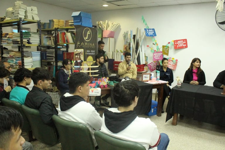 [12/09/2024] - La biblioteca de la Unidad Educativa de Gestión Privada N° 78 “Fé y Alegría” fue escenario del Foro de Emprendedurismo, destinado a alumnos que cursan el quinto año y del que disertaron emprendedores formados en la Oficina de Empleo de la Municipalidad de Resistencia.