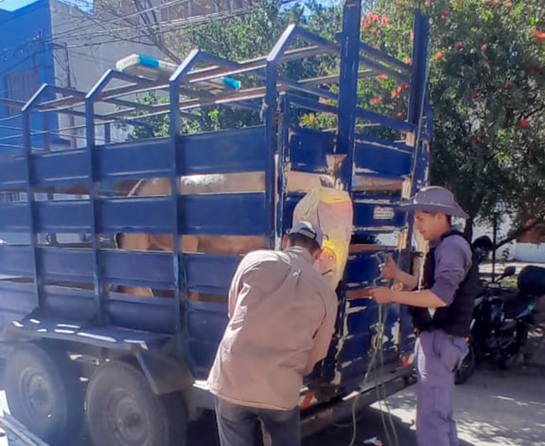 En la intersección de calle Formosa y avenida Rivadavia se procedió al secuestro de un carro, tirado por un equino, en el que se trasladaba una persona. El procedimiento se llevó a cabo en conjunto con la Policía Rural, que es la encargada de trasladar al animal y ponerlo a resguardo hasta que la Justicia determine su destino.