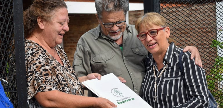 La concejal Analía Verón destacó estos operativos que se realizan para entregar los títulos casa por casa y en mano a cada familia beneficiada. "Llevamos alegría a los vecinos de Resistencia, como esta familia que hace 30 años inició el trámite y hoy obtiene el título que la reconoce como propietario del terreno que habita".