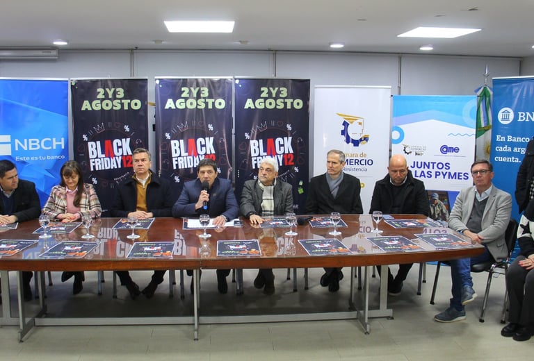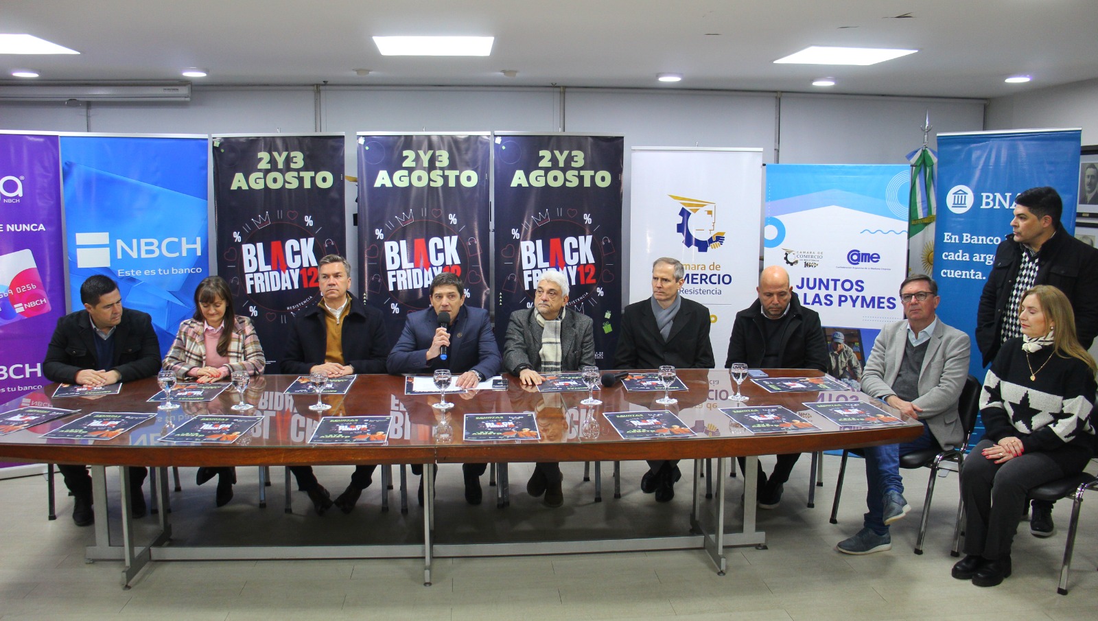 [12/07/2024] - El Municipio participó en el lanzamiento de la 12° edición del Black Friday, organizado por la Cámara de Comercio de Resistencia que se llevará a cabo el viernes 2 y sábado 3 de agosto, con grandes beneficios para comprar con descuentos y en cuotas. En la conferencia de prensa estuvo presente el gobernador de la Provincia, Leandro Zdero.