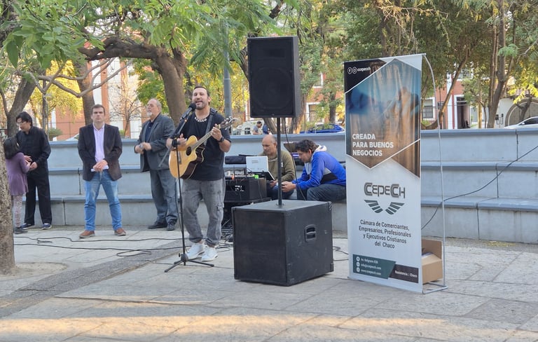 [13/07/2025]-En la Plaza 12 de Octubre se llevó a cabo un tiempo de oración, organizado por la Cámara de Comerciantes Cristianos, Profesionales y Ejecutivos del Chaco, que contó con el apoyo del Municipio, declarando de interés la actividad. Oraron por las autoridades, la familia y la educación.