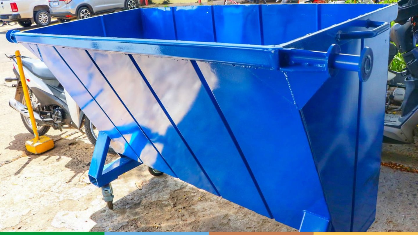 300 contenedores metálicos para residuos, con medidas estándares y normalizadas para ser operadas por camiones compactadores con carga trasera y con sistema de levantamiento tipo estribo.