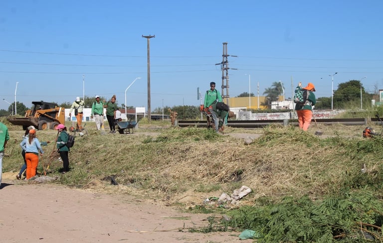 [09/01/2025] - El Municipio realiza trabajos de mantenimiento que incluyen desmalezado, despeje de ramas y recolección de residuos y restos verdes, en la intersección de Ruta 11 y avenida 25 de Mayo, hasta el inicio de calle Julio A. Roca. En días anteriores estuvieron trabajando en el Barrio Paykin.
