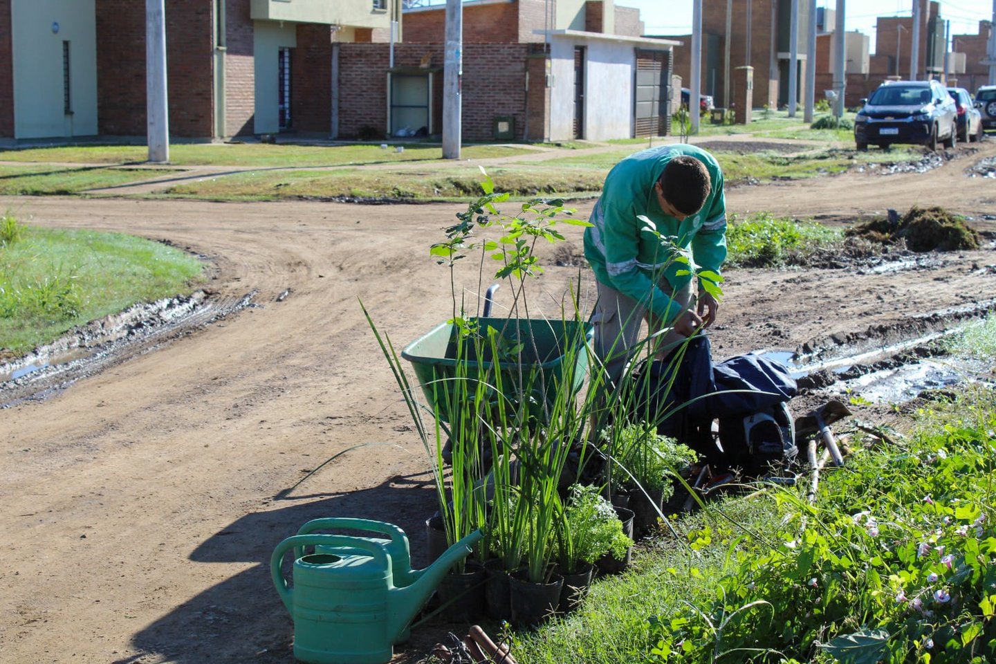 Además, la Dirección de Vivero, trabajó en la plaza del barrio 1000 Viviendas, en donde plantaron ejemplares de diferentes especies para embellecer ese espacio público e impulsar el compromiso de los vecinos para el cuidado y mantenimiento.