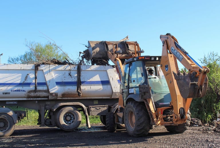 Para los trabajos de recolección de residuos y restos verdes, los trabajadores contaron con el apoyo de bateas, minicargadoras, retroexcavadoras y camiones volcadores.