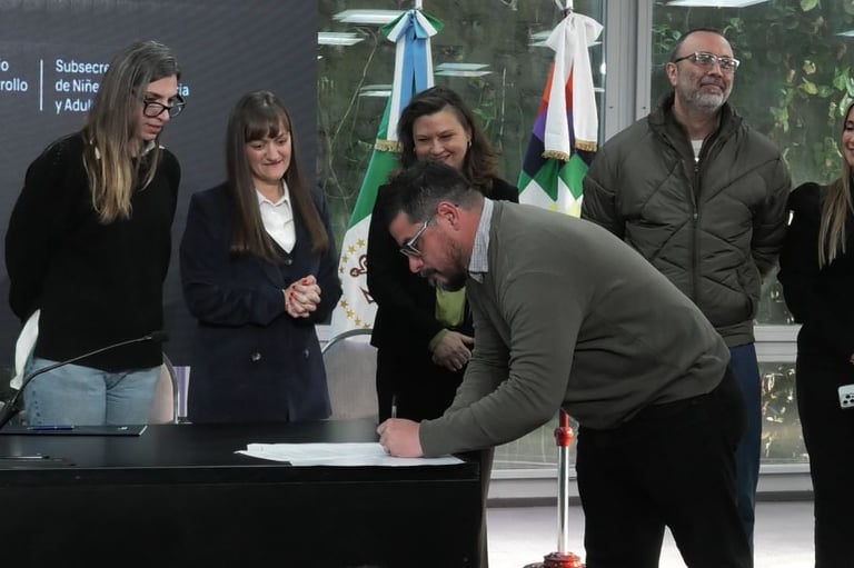De la firma participaron la vicegobernadora, Silvana Schneider, la ministra de Desarrollo Humano, Carina Botteri Disoff; y al subsecretario de Niñez, Adolescencia, Familia y Adultos Mayores, Fernando Samudio.