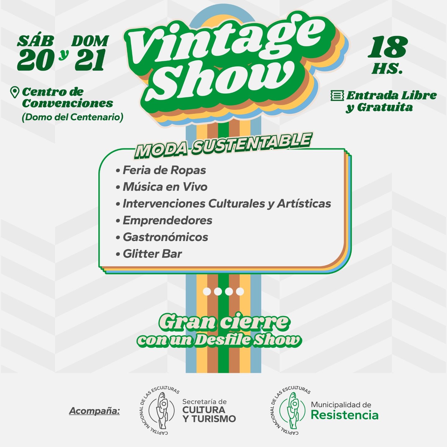 Además, en el Centro de Convenciones del Domo se hará la primera Feria Vintage, junto a un grupo de mujeres que impulsan esta actividad, con un desfile de moda de prendas icónicas, música en vivo, intervenciones culturales y artísticas, emprendedores, gastronómicos y glitter bar.