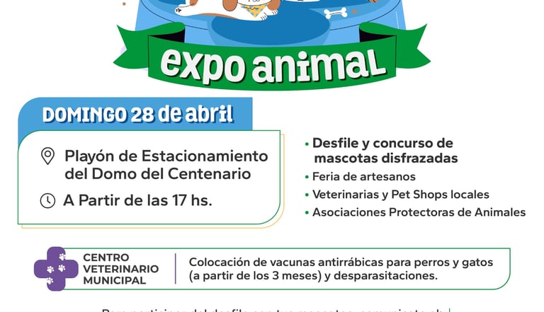 La exposición contará con veterinarias y pet shops locales que harán promoción y difusión de sus servicios. Además, estarán a la venta productos alimenticios, de aseo y medicamentos, siempre dedicados a mascotas.