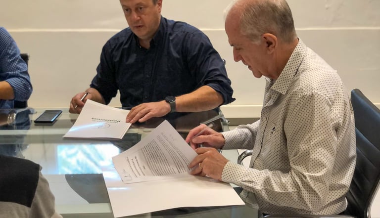 [11/06/2024] - El intendente de Resistencia, Roy Nikisch, firmó un convenio con el administrador general de Vialidad Provincial, Omar Canela, para la ejecución de obras de bacheo, que se ejecutarán en la zona del macrocentro y para el arreglo de calles de ripio en los barrios.