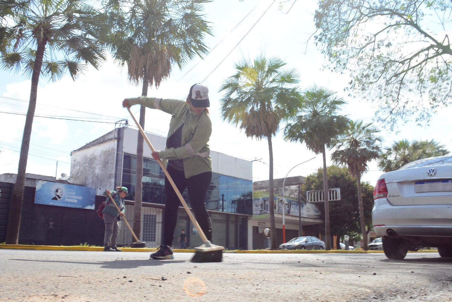 Miguel Maciel, a cargo del operativo, contó que el grupo tiene “a cargo la plazoleta de los niños, también la rotonda de Ruta 11 y 16; además de la avenida Sarmiento, desde la Ruta 16 hasta el centro”.