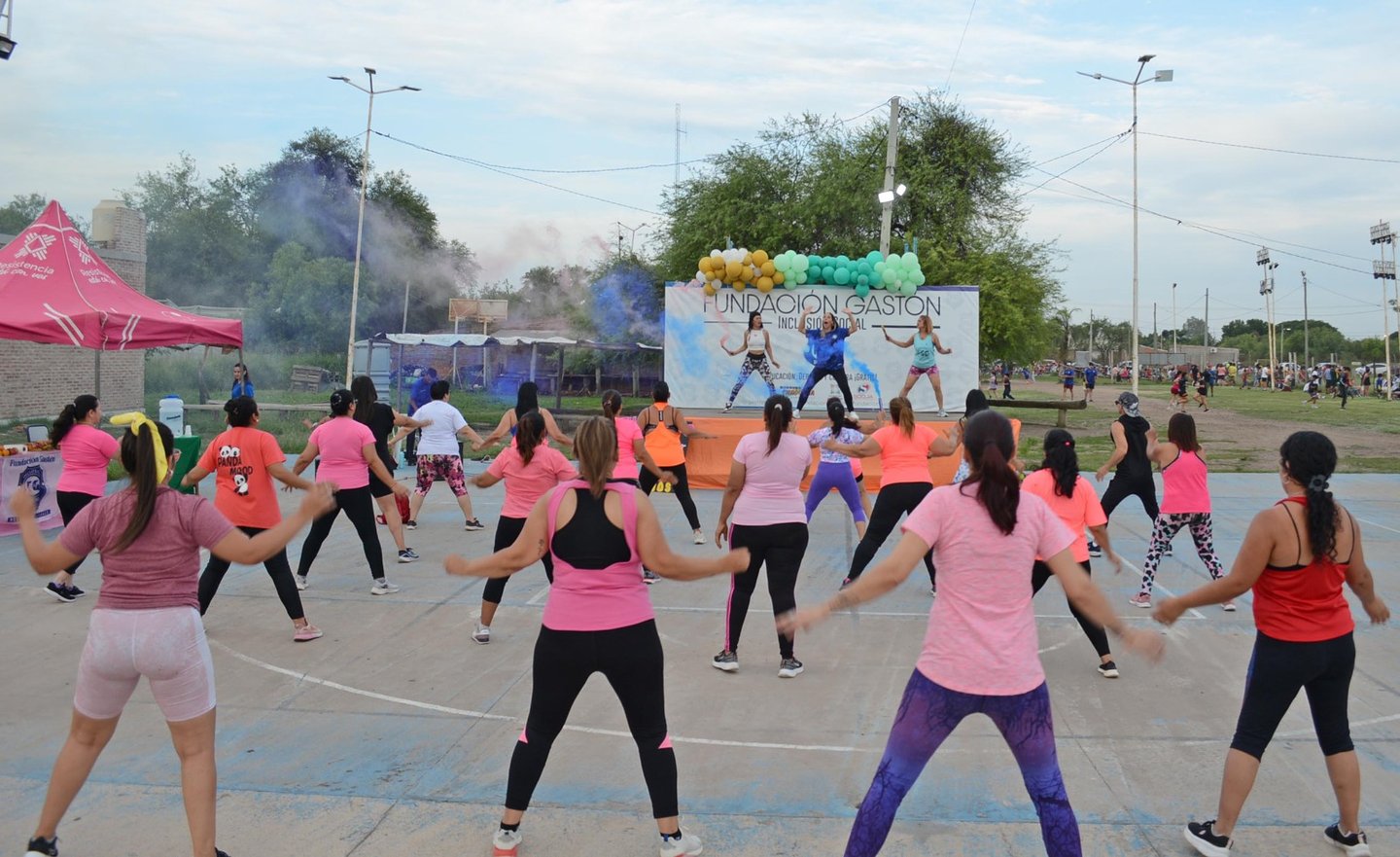 La Fundación Gastón De Los Santos realizó este jueves un encuentro de grupos que desarrollan gimnasia con distintos ritmos musicales; fomentando el baile propiamente dicho, pero sobre todo utilizando distintas técnicas saludables en términos aeróbicos y fuerza.