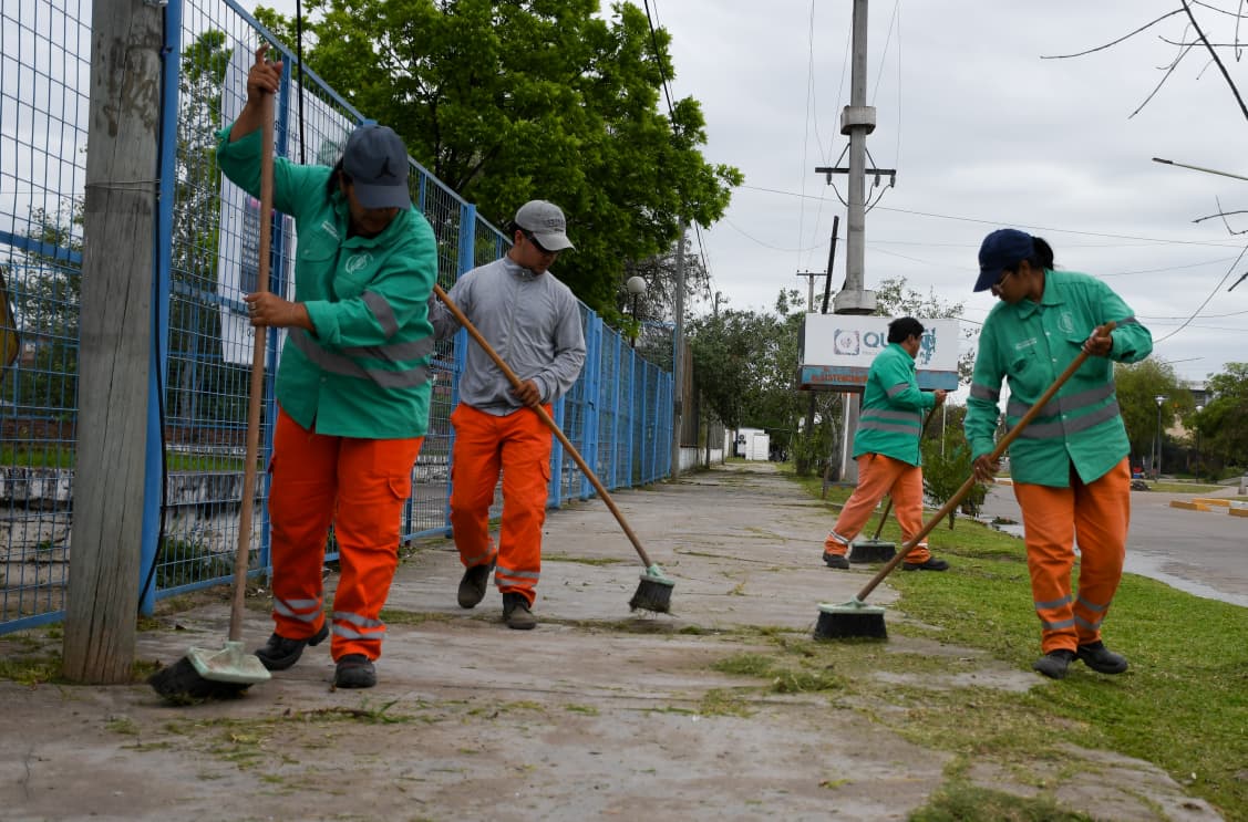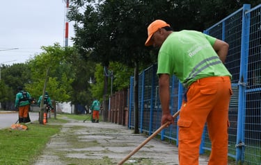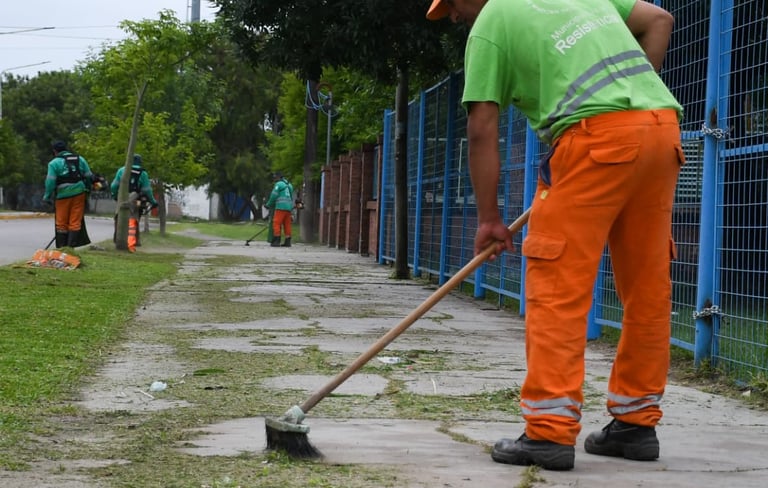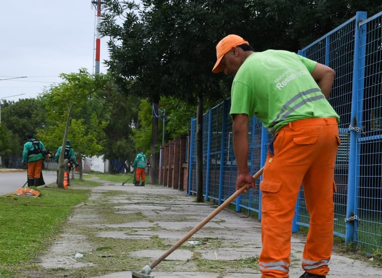 Omar Aguirre, jefe de Servicios del CCM del barrio Independencia, explicó que el sábado se organizó un amplio operativo de desmalezamiento, barrido y limpieza de canteros centrales, banquinas y veredas en avenidas como la López Piacentini, desde Chaco hasta Las Heras, la Tránsito Cocomarola y la Sarmiento, además de la calle Los Hacheros y arterias internas de Villa Luzuriaga.