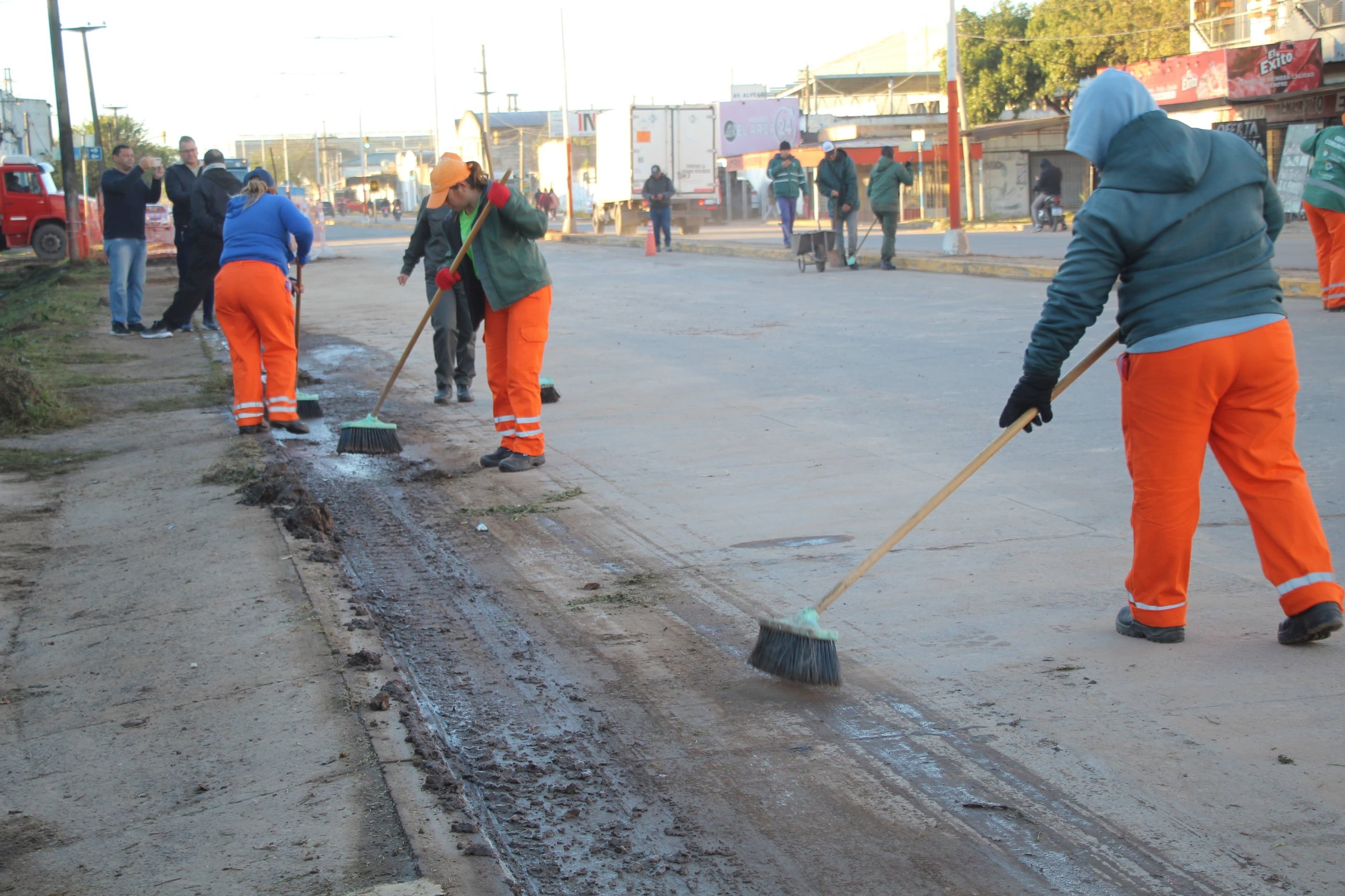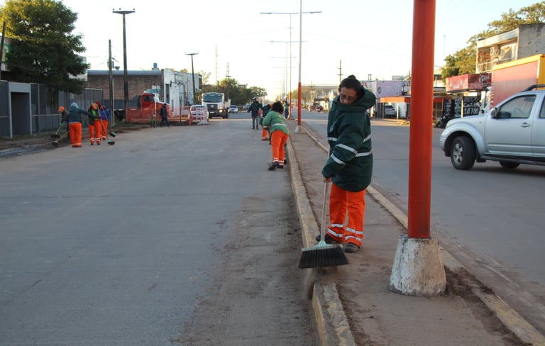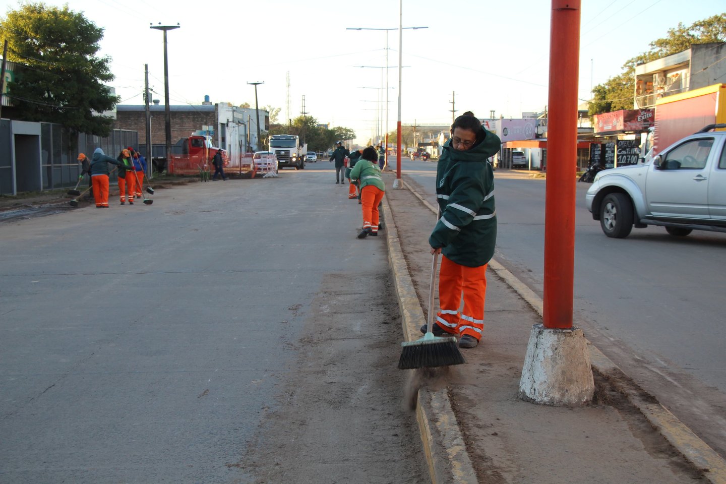 Desde la Coordinación de Servicios Públicos informaron que las tareas consistieron en barrido manual, tanto de los cordones de los canteros centrales como también en los bordes del pavimento, donde se había acumulado polvo, producto de las precipitaciones del pasado lunes. Se limpió el sector y se acumularon tierra y residuos en un punto al final de cada cuadra para que luego sean retiradas por los equipos viales.
