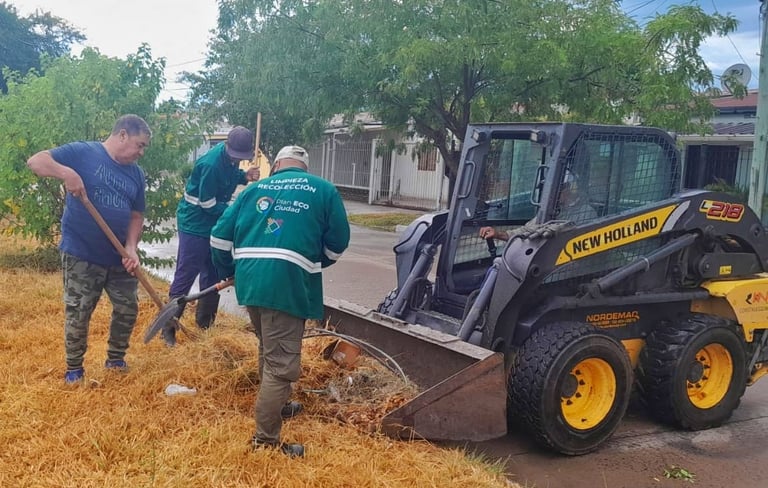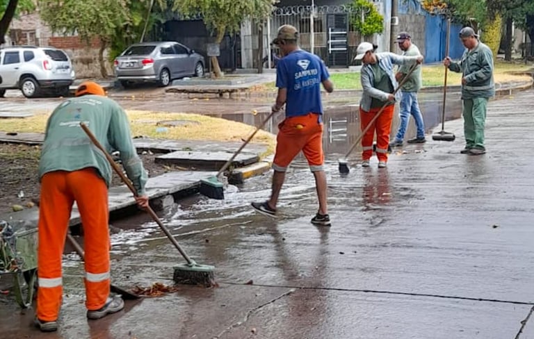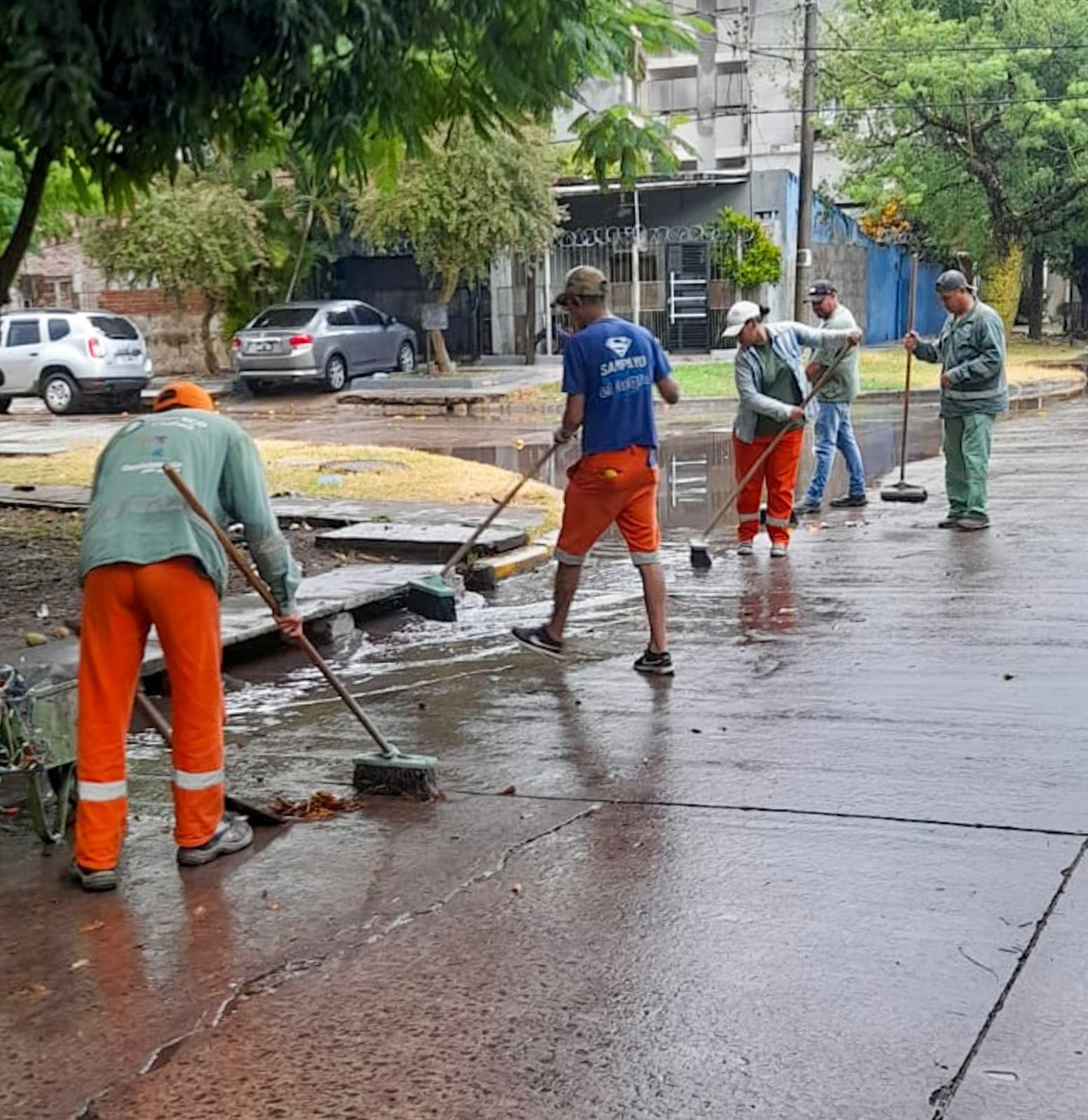 Con el objetivo de evitar anegamientos, se hizo hincapié en despejar de desechos y hojas de sectores cercanos a los sistemas de drenaje, trabajando también en los canteros centrales y banquinas de zonas como ser Villa Prosperidad, Villa Don Rafael y el barrio Santa Rita.