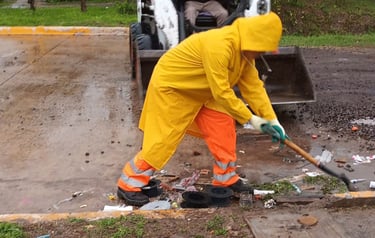 Cuadrillas de las distintas áreas de servicios trabajaron en varios puntos de la capital, en especial limpiando parterres, canteros centrales, bocacalles donde se acumularon residuos y hojas sueltas que pudieran obstruir los desagües.