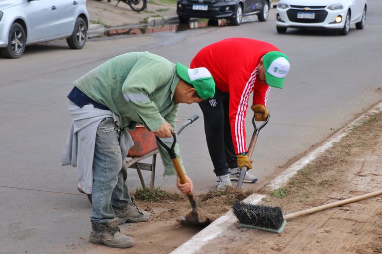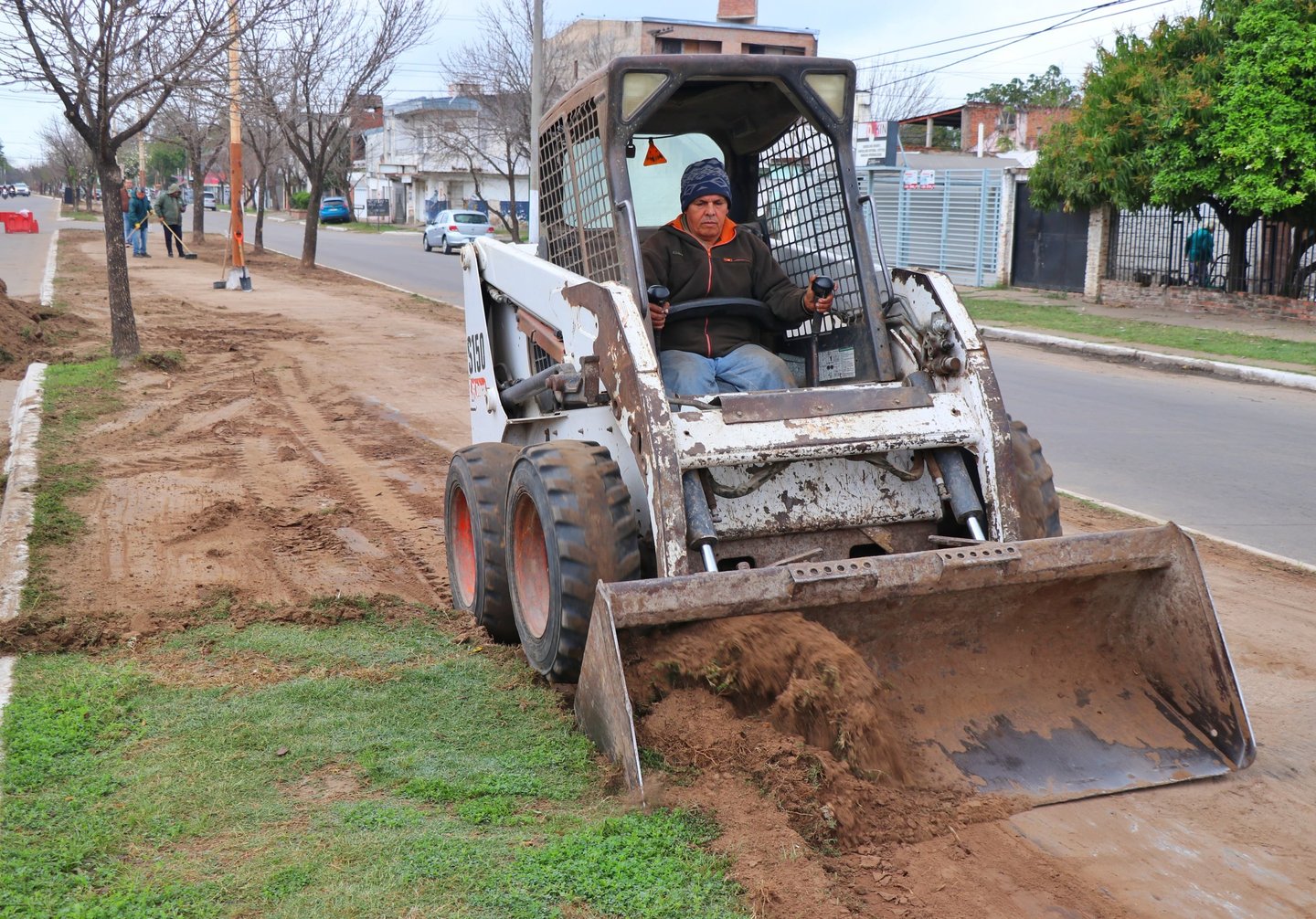 Indicó que la intervención se basó en el despeje de tierras tanto del parterre como de los cordones, más el barrido manual y desmalezado. “Trabajamos en doble turno, comenzamos desde Marconi al 0 y seguiremos hasta la colectora de la ruta nacional 11, unos dos kilómetros y medio”, consignó, añadiendo que utilizaron 20 personas en doble turno, más equipos viales como una minicargadora y un camión batea.