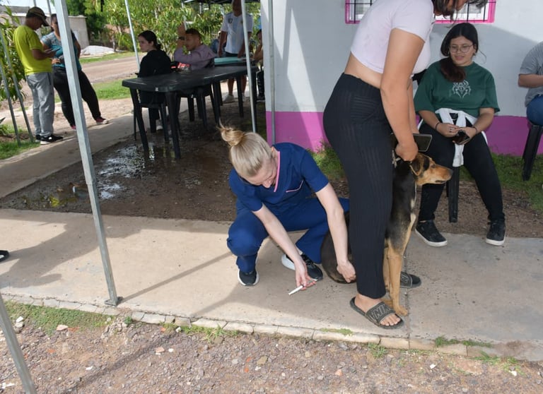 Gerónimo es vecino del lugar y llevó a castrar a su perra Mila. Mientras esperaba la intervención, comentó: “Aprovechamos esta oportunidad porque es algo que hay que hacer. Nos enteramos a través de las redes del Municipio, la vez pasada vimos que estaban dando turnos en el Centro Veterinario Municipal; fuimos a averiguar ahí y nos dijeron que estarían todo el día acá”.
