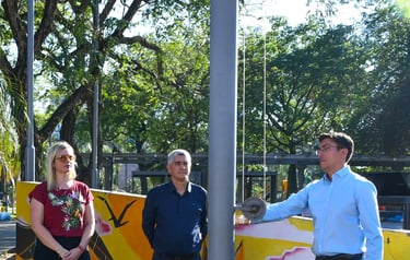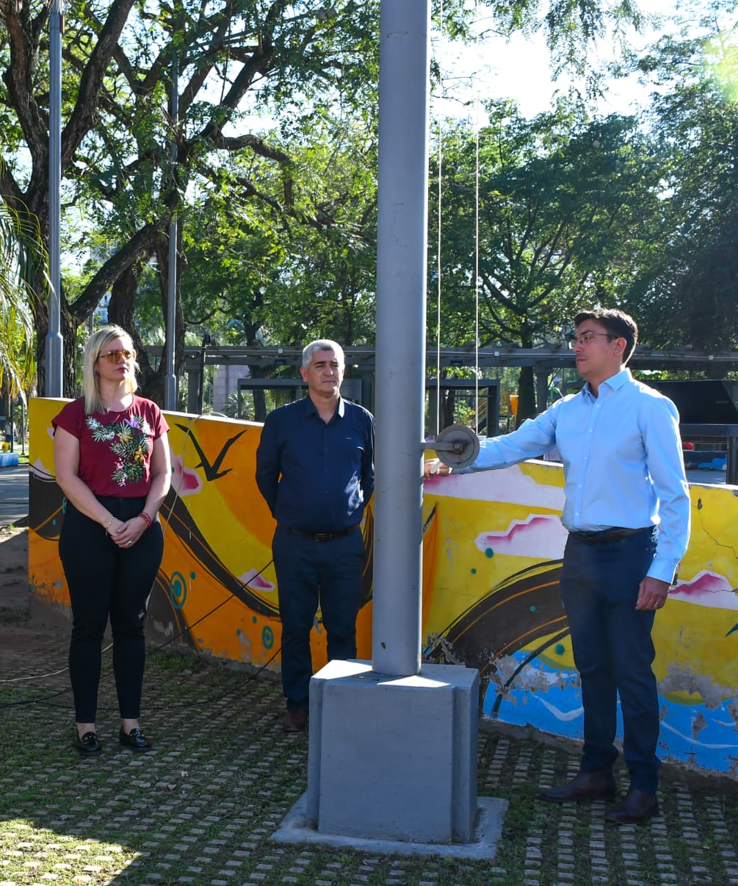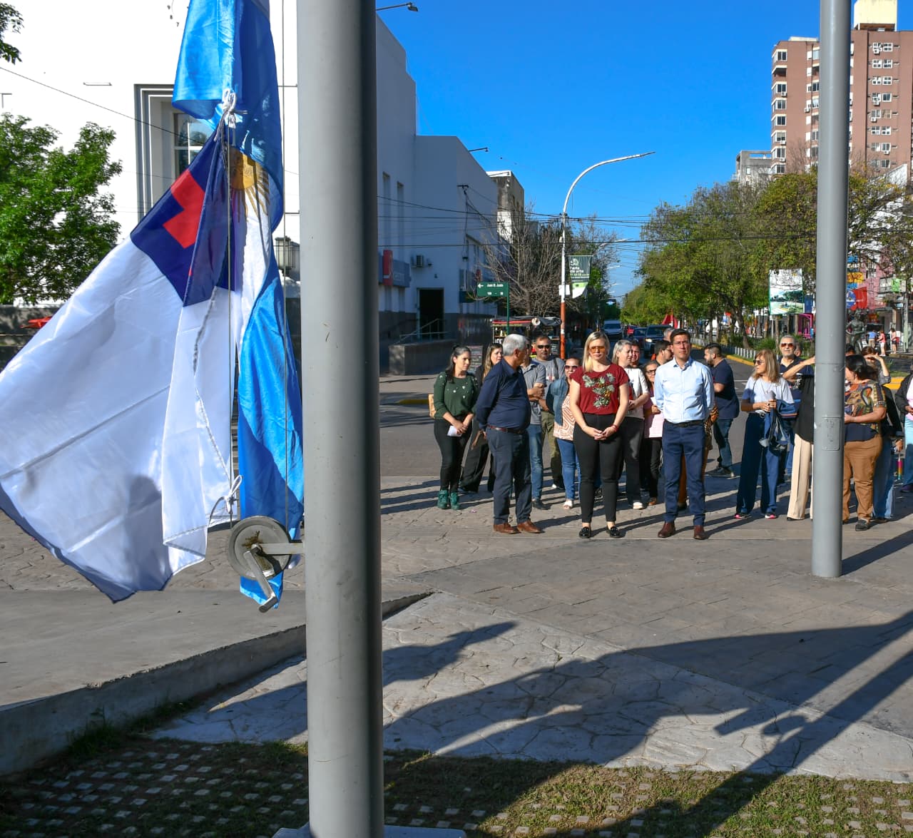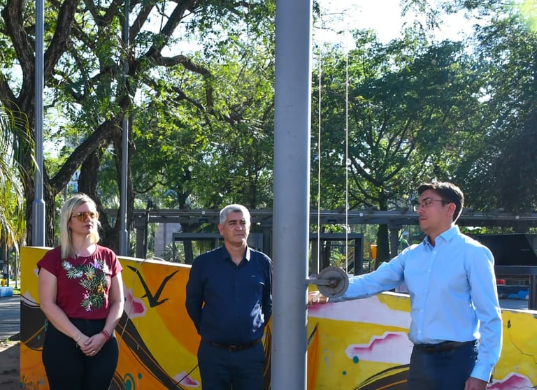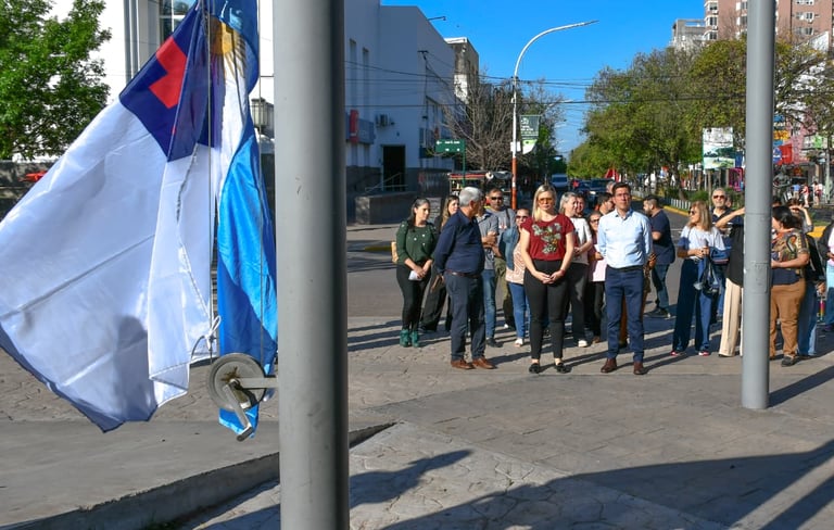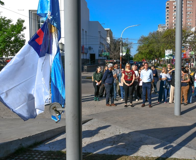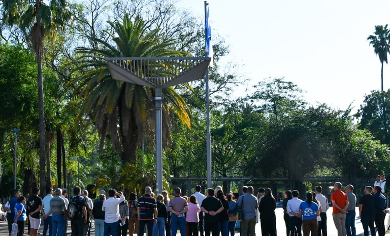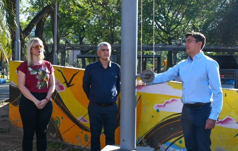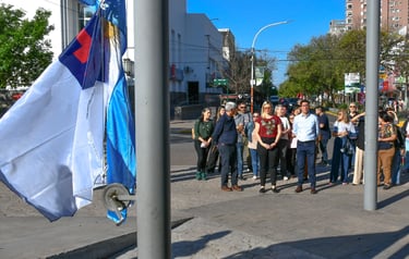 [05/10/2025-Con el acompañamiento de la Municipalidad de Resistencia, se izaron la bandera nacional y la cristiana en la Plaza 25 de Mayo, iniciando el denominado «Mes de las Iglesias Evangélicas».