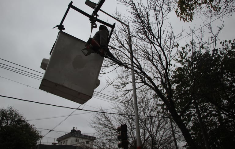 Maximiliano Tononi, director del área de Paseos y Jardines, supervisó esta intervención y recalcó que la misma incluye el levantamiento de copas, en especial para favorecer el tránsito peatonal y vehicular, además de evitar que las ramas provoquen daños en el tendido eléctrico.