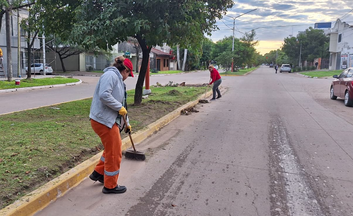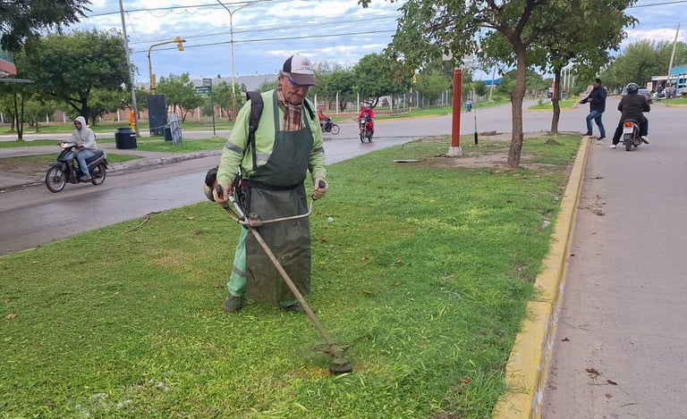 Tareas de desmalezado y barrido se ejecutaron en el barrio Bancarios, mientras que a lo largo de la avenida 25 de Mayo se llevaron a cabo las mismas intervenciones.