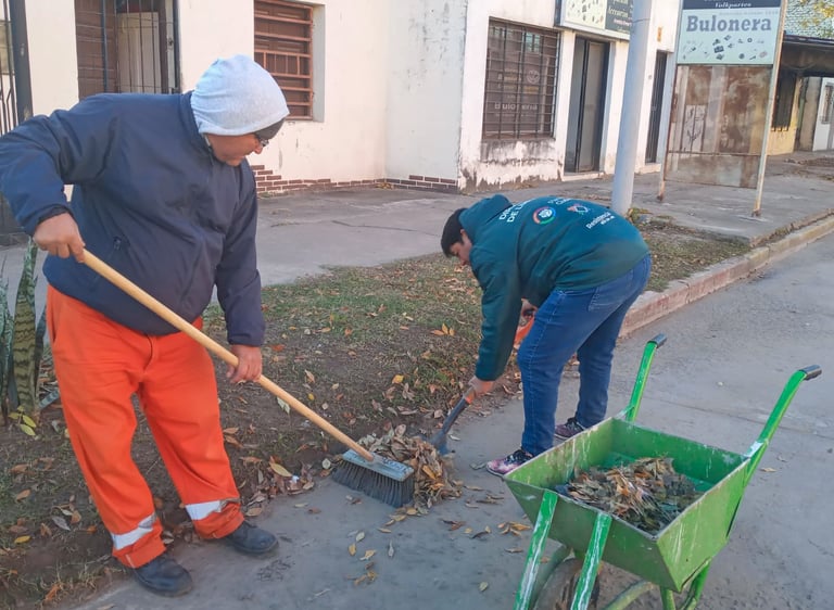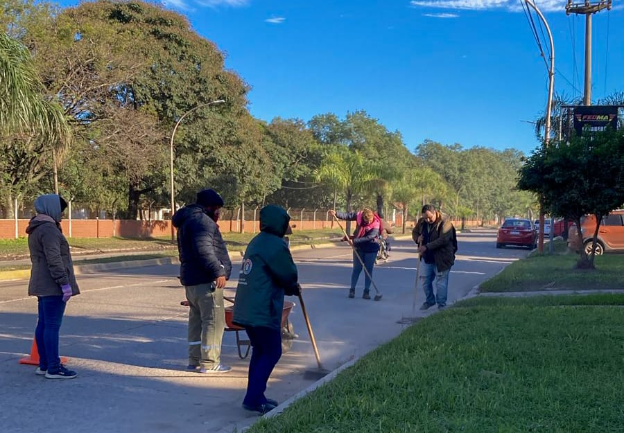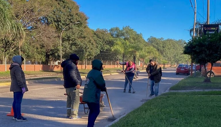 En el barrio Güiraldes hubo desmalezado y recolección de hojas y ramas y barrido y escurrimiento de agua por la avenida Malvinas Argentinas, frente al barrio Los Cisnes.