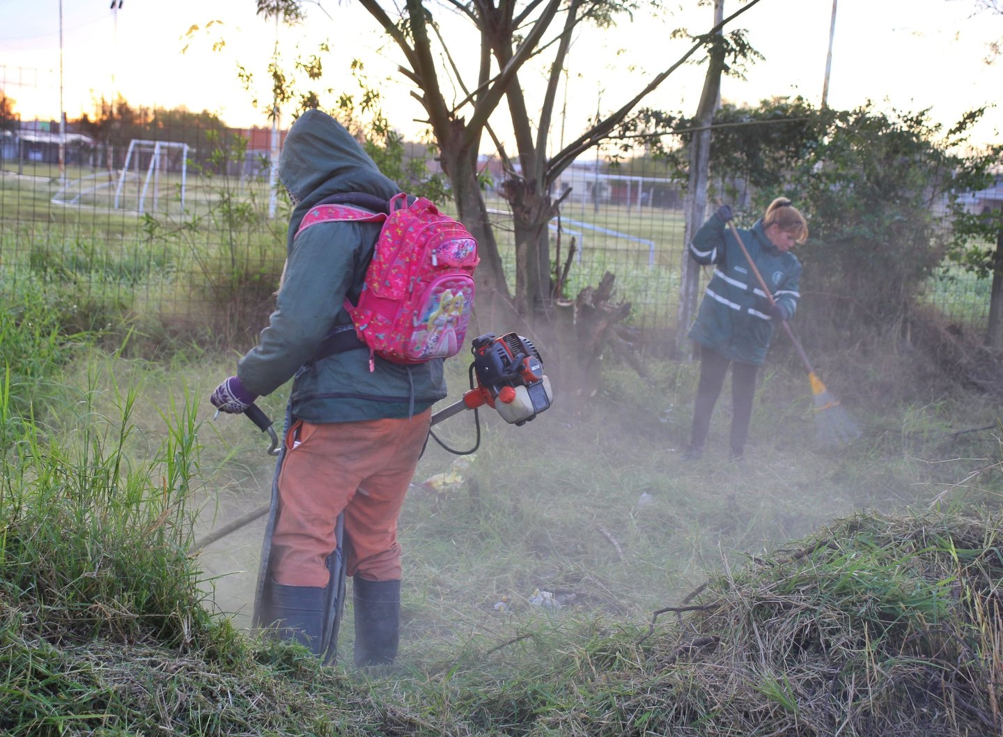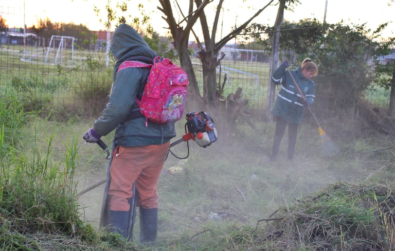 Valeria Prieto, a cargo de esta labor, explicó que el trabajo comenzó el jueves “con tareas de desmalezado, poda, recolección de restos verdes y de residuos depositados en la vía pública”.