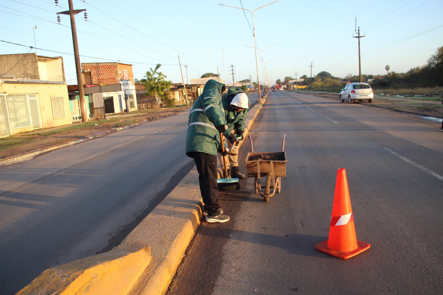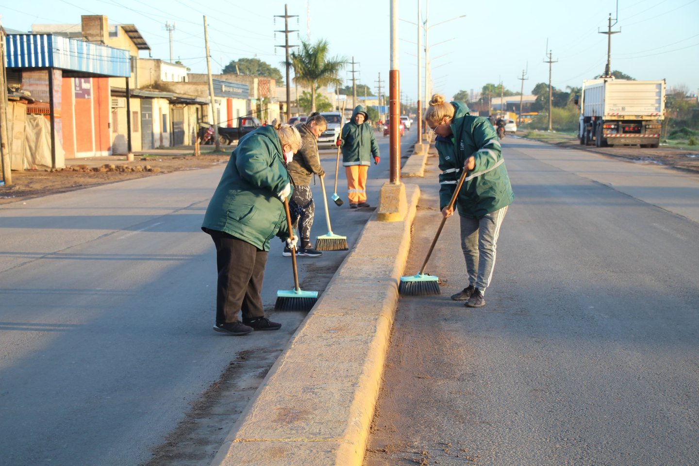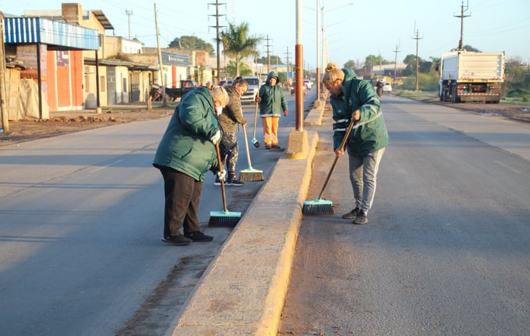 Este martes, personal del Centro Comunitario del barrio Mariano Moreno ejecutó esta intervención en la mencionada arteria, limpiando los canteros centrales y barriendo los cordones, donde se acumuló barro debido a las recientes lluvias.