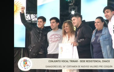El Grupo Trinar es un destacado conjunto vocal de folklore juvenil de Resistencia, que va escribiendo su historia, llevando el folklore chaqueño a nivel nacional con su música y energía.