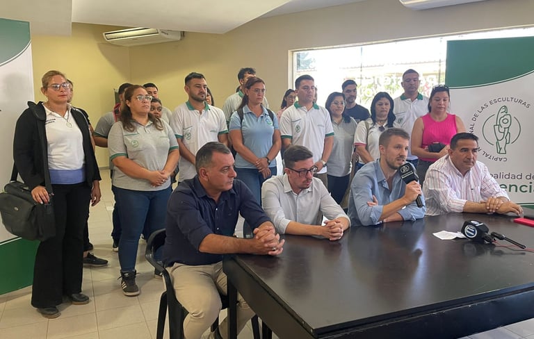 [27/12/2024] - El secretario de Gobierno, Emilio Varisco, junto a su par de Coordinación Ejecutiva, Sergio Almirón y los subsecretarios de Fiscalización Urbana, Alejandro Alloatti, y de Tránsito y Transporte, Darío Sardi, brindó una conferencia de prensa para dar detalles sobre los casos de trabajadores de la Dirección de Inspección General agredidos en diferentes operativos de control sobre la venta de pirotecnia no permitida.