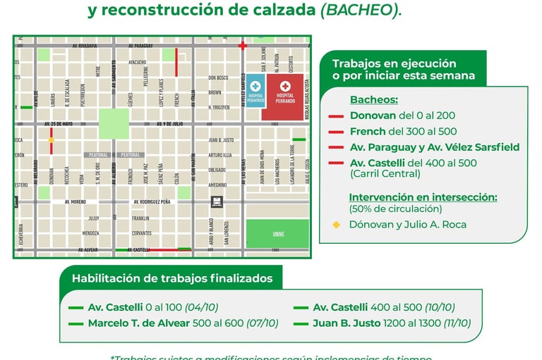 [30/09/2024] - La Municipalidad de Resistencia y Vialidad Provincial informa cómo seguirá el Plan de Bacheo en esta semana. En todos los casos, el tránsito vehicular será restringido e inspectores viales regularán la circulación en los sectores intervenidos.