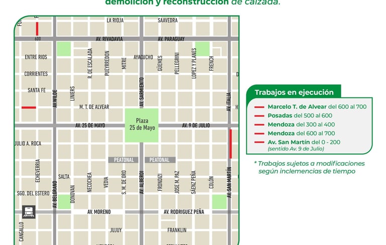 Avenida San Martín 0-200 (sentido a 9 de Julio).