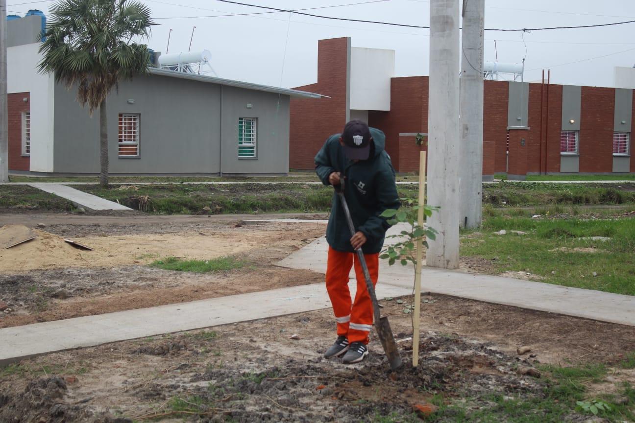 PLANTARON ARBOLES EN LOS FRENTES DEL BARRIO CHACRA 137, PROXIMO A INAUGURARSE