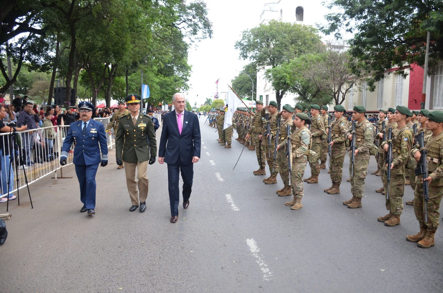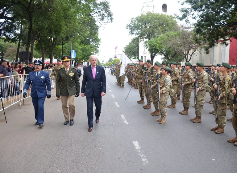 También fue emotivo el desfile cívico militar que se realizó en las calles Mitre y Santa María de Oro, frente a la Plaza 25 de Mayo, con gran despliegue de instituciones públicas, privadas, colectividades, soldados de distintas agrupaciones y de los héroes del Atlántico Sur.