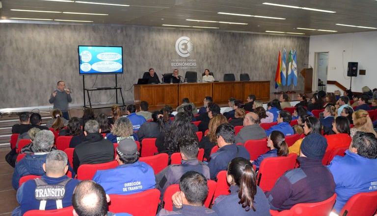 [15/05/2024] - En el auditorio de la Facultad de Ciencias Económicas de la Unne se desarrolló una nueva jornada de capacitación coordinada por la Secretaría de Gobierno de la Municipalidad de Resistencia. El temario estuvo centrado en el abordaje integral de la tarea que desarrollan los inspectores y el protocolo de actuación que deben respetar como representantes de la comuna.
