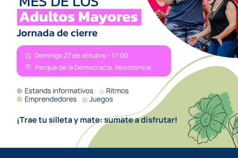 [24/10/2024] - La Municipalidad de Resistencia, en conjunto con el gobierno provincial, organiza un nuevo evento al aire libre para celebrar la vida junto a los adultos mayores de la ciudad; poniendo siempre énfasis en actividades que les faciliten el acceso a servicios o los nutran física y espiritualmente.