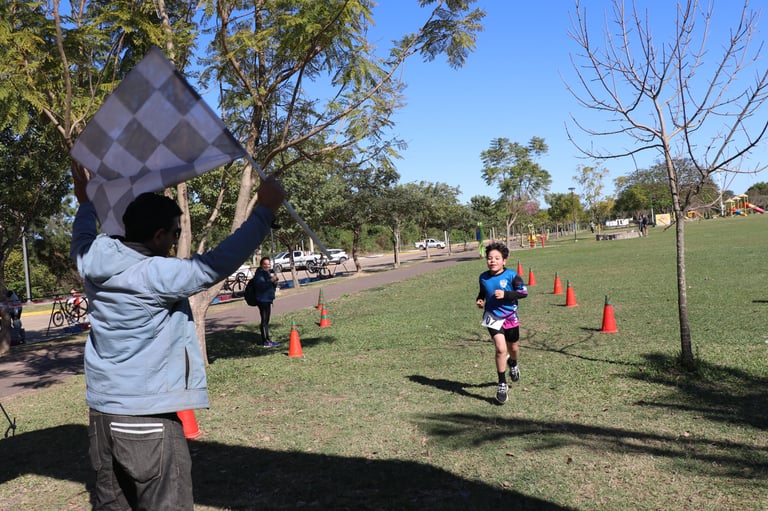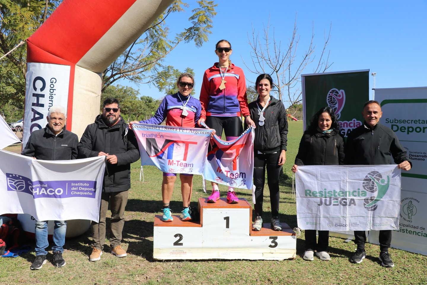 [25/08/2024] - La Municipalidad de Resistencia aportó este domingo la logística para este destacado evento deportivo que reunió a más de 80 deportistas de distintas provincias que comenzaron corriendo cuatro vueltas alrededor del Parque de la Democracia, luego tomaron sus bicicletas para recorrer 20 kilómetros y finalizar con otros 2,5 de pedestrismo. Pedro Ginocchi y Estefanía Díaz fueron los ganadores de la categoría Elite en modalidad masculina y femenina, respectivamente.