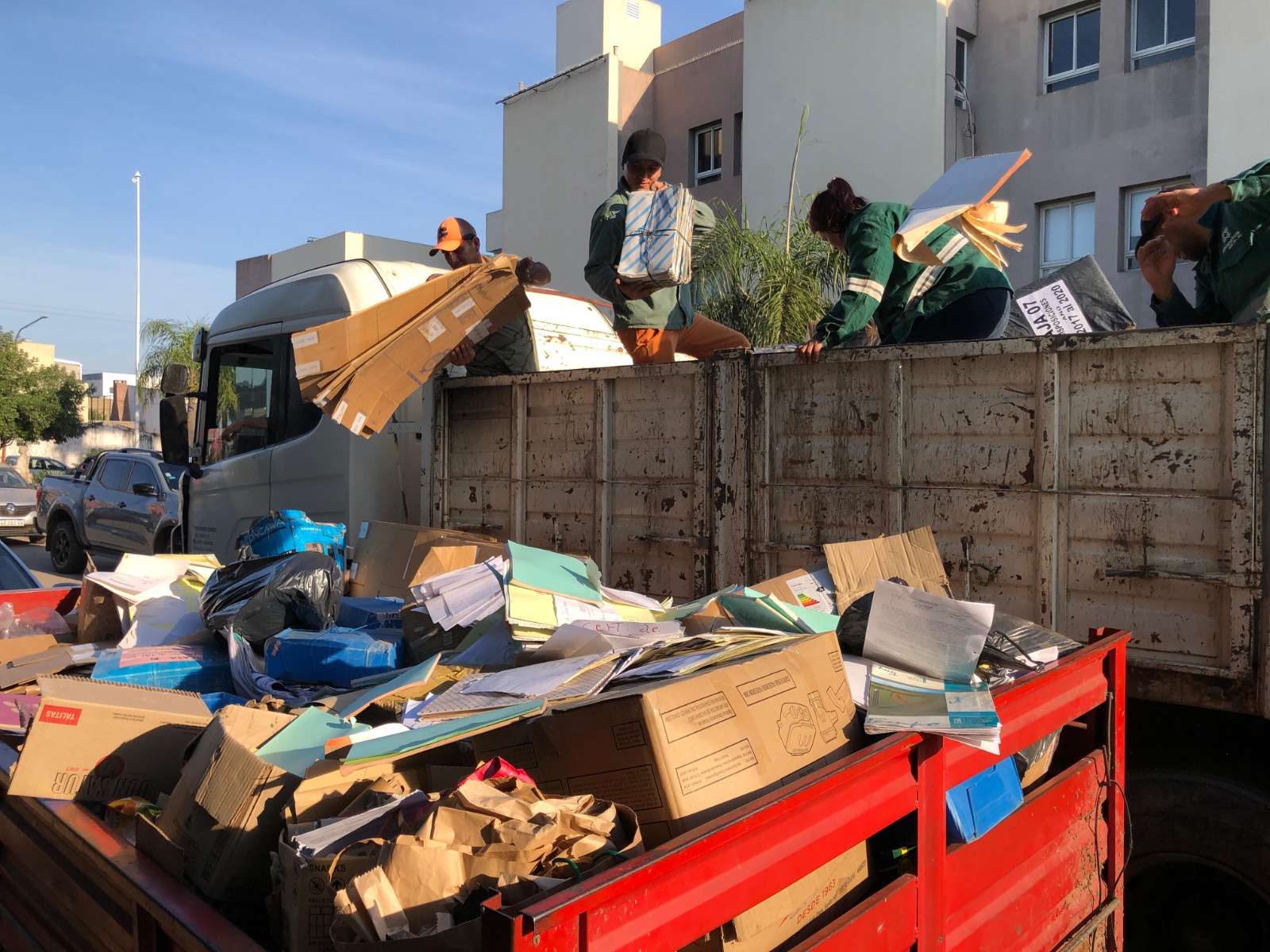 Ayer viernes, personal municipal llevo adelante un nuevo traslado de material correspondiente a acciones administrativas ya prescriptas que datan desde 1991. Con la acción de este día ya se superaron los 300 kilos de papeles y cartón entregados.