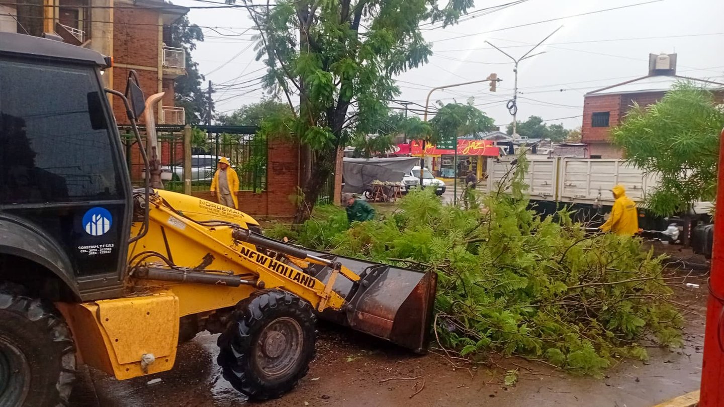 Hubo árboles caídos en las siguientes zonas: Avenida San Martin 1845, calles Carlos Hardy, intersección de Lynch Arribalzaga y 26, barrio Santa Inés,;Edison intersección con Chaco, Corrientes y Alberto Torres N°299 y en la Edison N°3450 con un árbol obstruyendo la vía pública y voladura de techo en una vivienda de Villa Fabiana sur.
