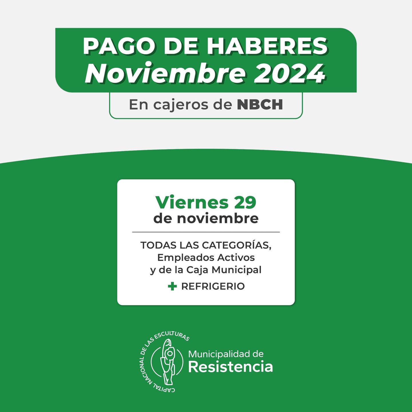 [26/11/2024] - La Municipalidad de Resistencia pagará los sueldos correspondientes al mes de noviembre, este viernes 29, al igual que el Refrigerio.