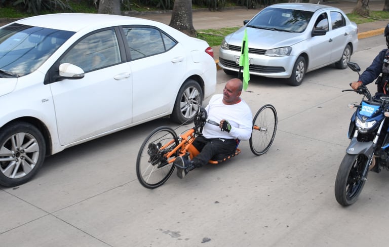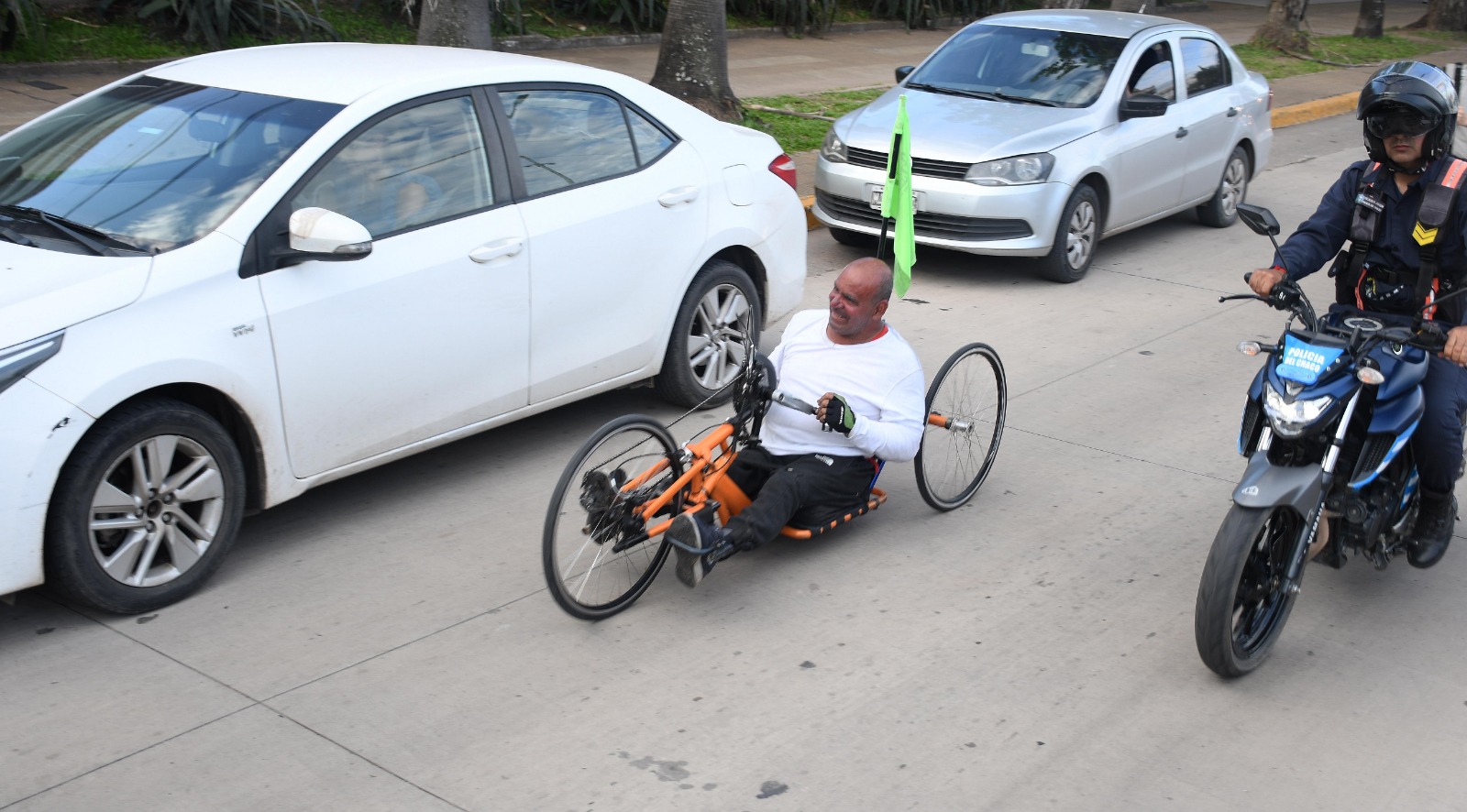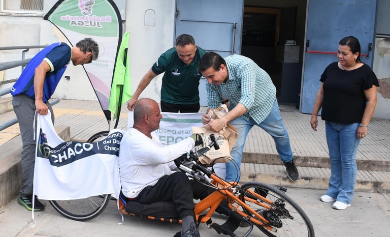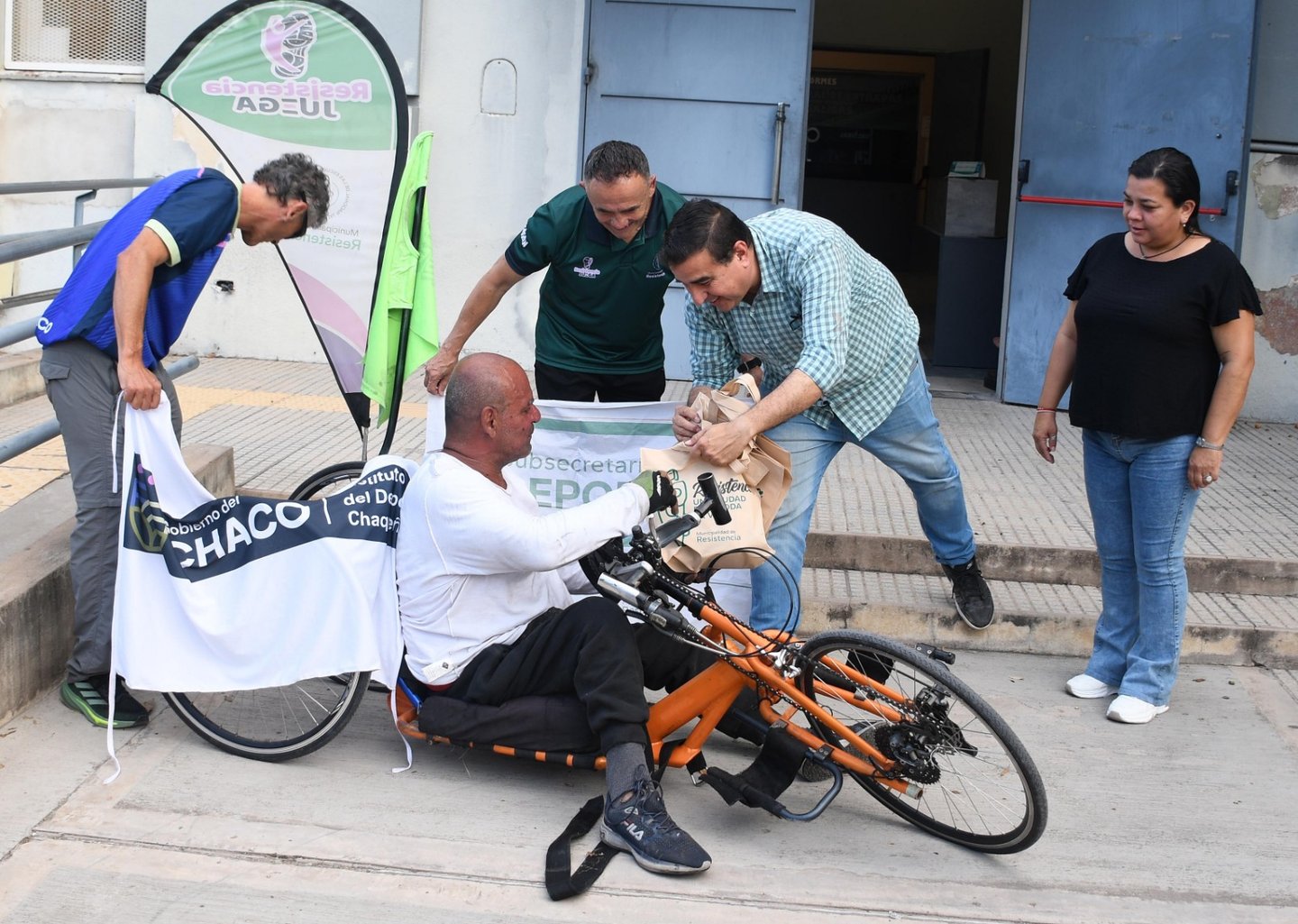 [06/11/2025-La Municipalidad de Resistencia, acompañada por el Instituto del Deporte Chaqueño, recibió este miércoles con honores a un deportista paralímpico que se encuentra realizando una travesía de 2000 kilómetros en silla de ruedas que se inició en Buenos Aires y viene de pasar por Formosa.