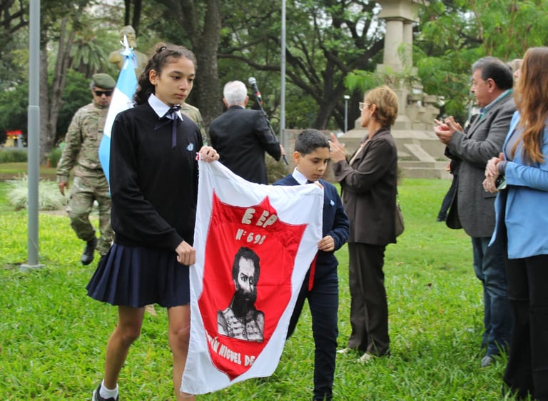 Luego se evocó su proeza al frente de su ejército, conocido como "Los Infernales", a cargo del alférez Aylen Selene Zárate.