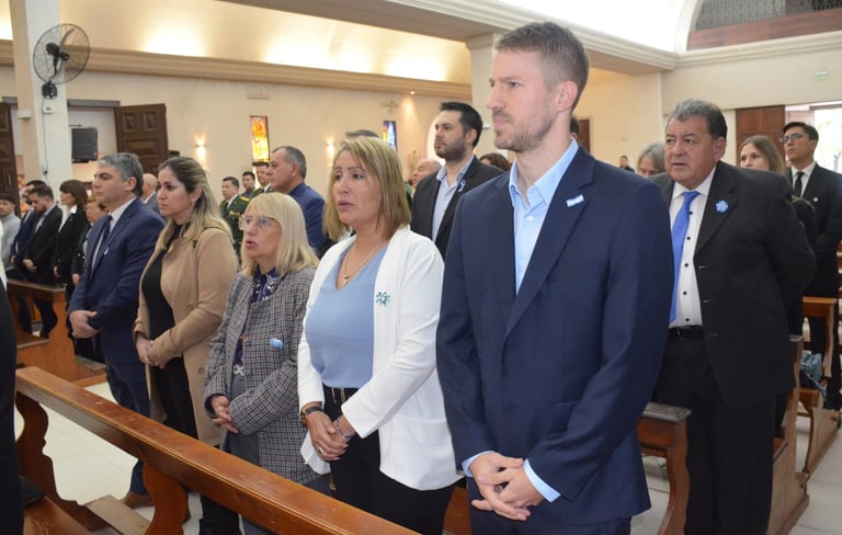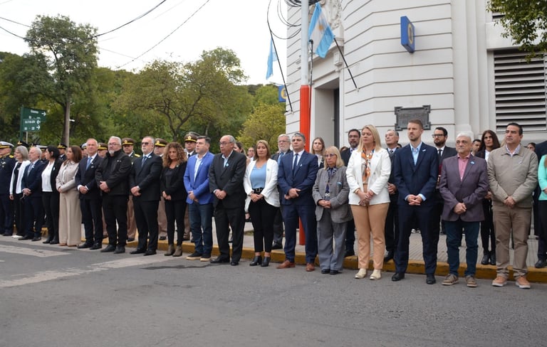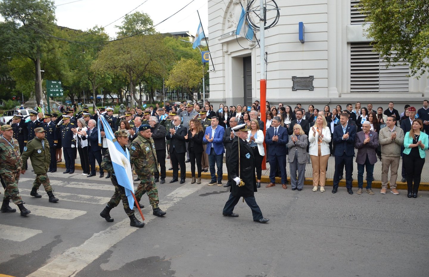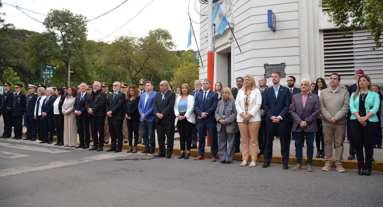 Con la presencia de autoridades municipales, provinciales, legislativas y eclesiásticas, la ceremonia siguió con la entonación del Himno Nacional Argentino y ofrenda floral.