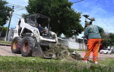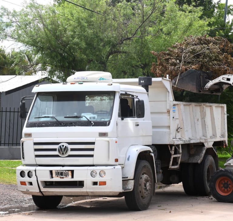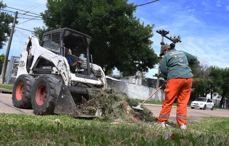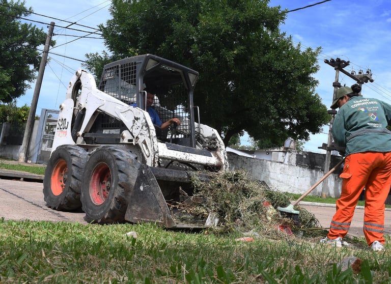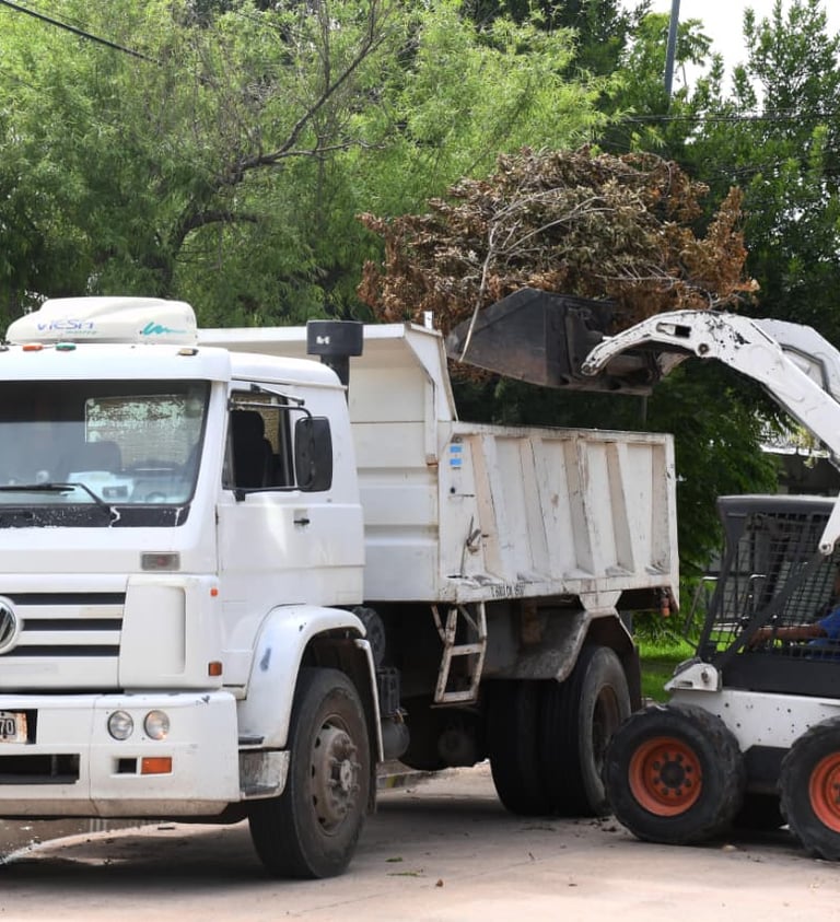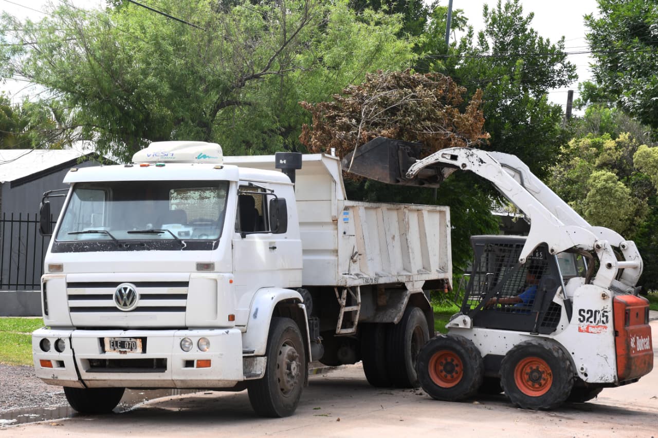 En el lugar se desplegó personal y maquinaria, además de un camión volcador, para recolectar restos verdes y todos los residuos no convencionales que se encontraran en la vía pública.