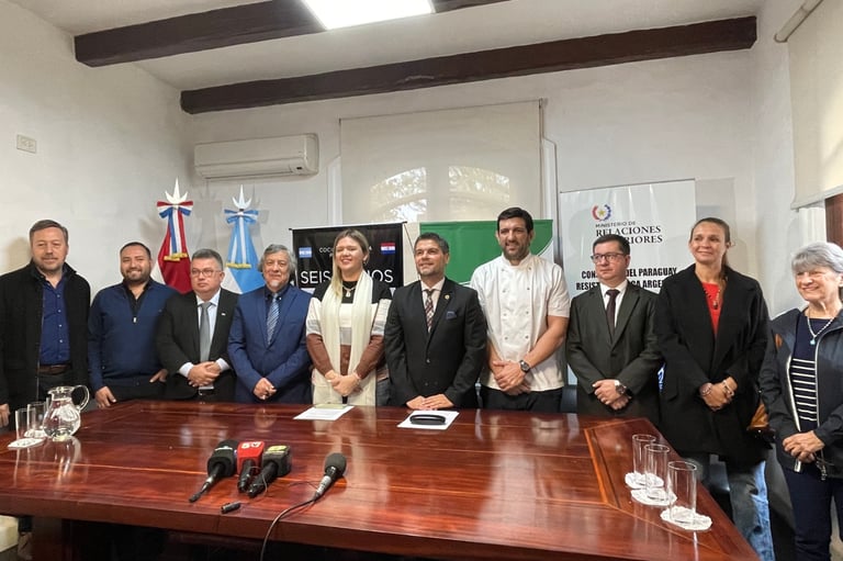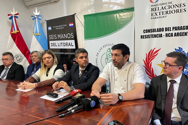 [07/08/2024] - En la sede del Consulado Paraguayo se presentó el evento "Seis Manos del Litoral. Historia de nuestra Gastronomía", una cena de platos típicos argentinos y paraguayos que se realizará en el Fogón de los Arrieros, el 17 de agosto.
