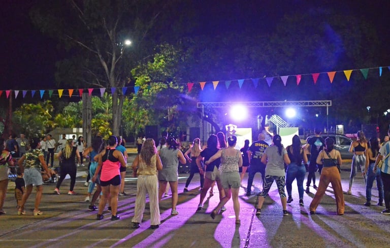 “La gente se animó y empezó a moverse, fue como un boliche latino al aire libre”, y resaltó “la ayuda municipal, nos brindó este espacio, tarimas, luces, estamos muy agradecidos”.