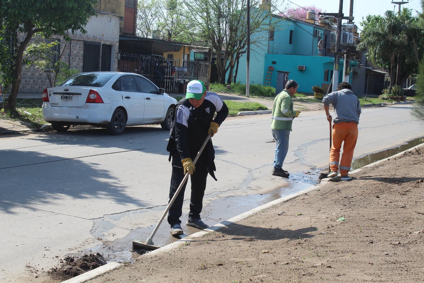 Las tareas son llevadas adelante por personal de la delegación del barrio San Cayetano, que con palas, carretillas, minicargadoras y camiones volcadores, se encargan del barrido manual y limpieza de cordones y canteros centrales.