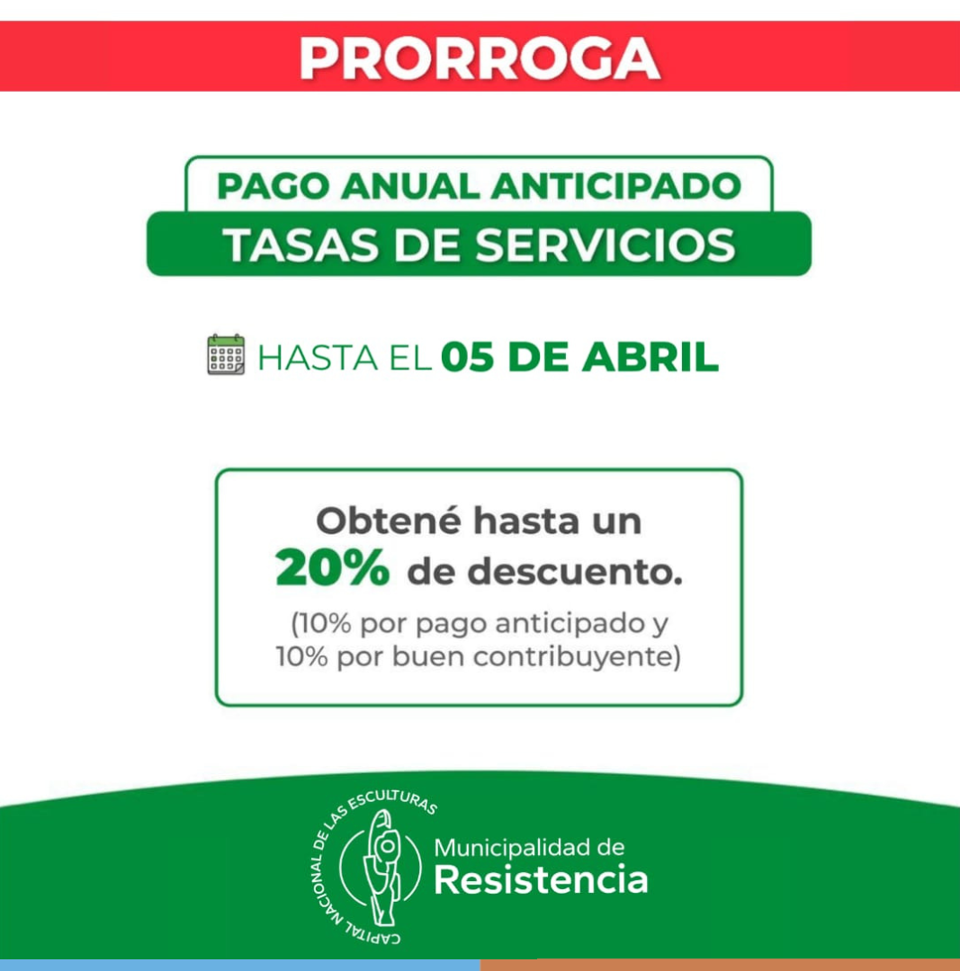 TASA DE SERVICIOS: LA MUNICIPALIDAD DE RESISTENCIA PRORROGÓ EL PAGO ANUAL ANTICIPADO HASTA EL 5 DE ABRIL