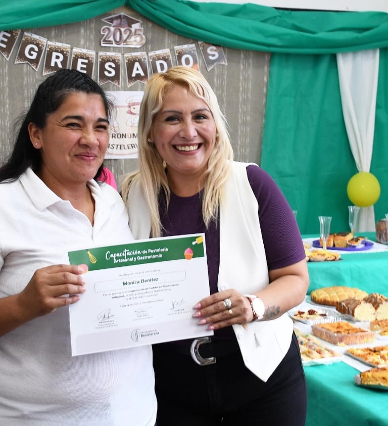 [17/12/2025] - La Municipalidad de Resistencia realizó el cierre de ciclo del curso de pastelería y repostería que se llevó adelante en el Centro Comunitario Municipal de Villa Prosperidad. Fueron 26 las participantes de la actividad que cumplieron con toda la cursada y recibieron el certificado correspondiente.