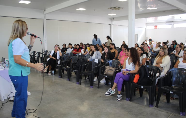 Vilma Verbeek, del área de Obstetricia del Hospital Perrando, fue una de las disertantes y, al respecto, señaló: “Es importante que nos hayan invitado, que sepan las atenciones que brindamos desde el Hospital, las obstetras tenemos nuestros consultorios, atendemos embarazadas y mujeres en edad fértil, de 8 a 14 horas”.